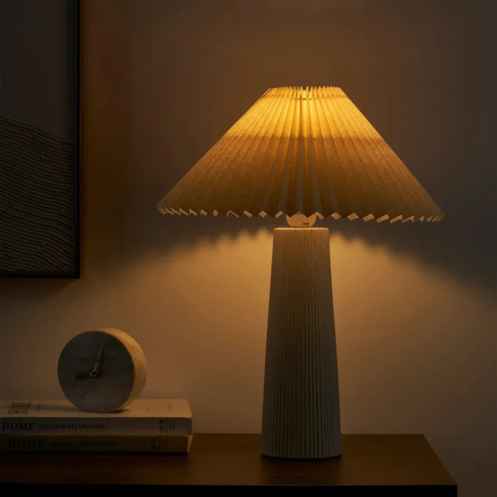 - Modern tabletop lamp with a stylish pleated fabric lampshade