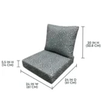 • 2-Piece Cushion Set; Includes Back: 20” L x 24” W x 7” H / Seat: 24” L x 24” W x 5.5” H