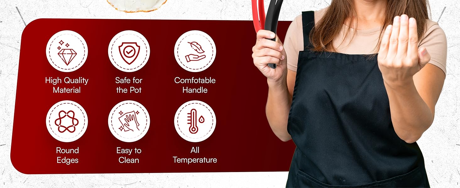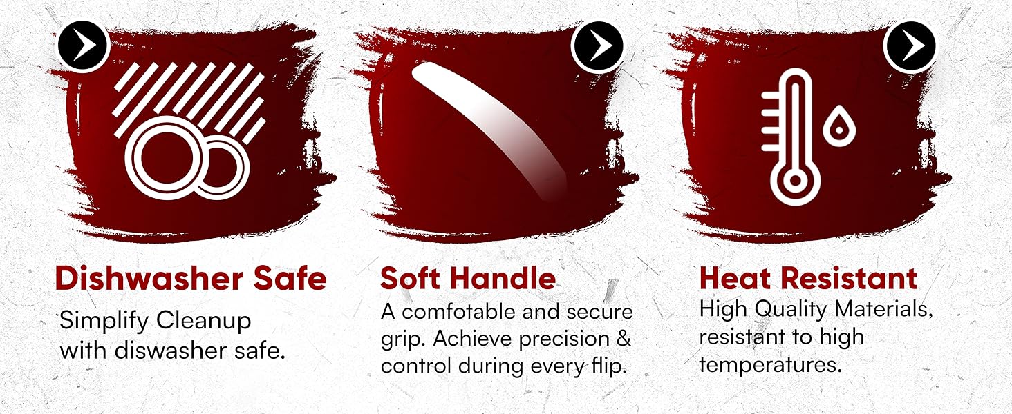 • 🔴⚫Set of 2 in Black and Red: Elevate your kitchen style with this sleek set of two egg flipper spatulas, featuring classic black and vibrant red colors. Whether you’re aiming for a modern or traditional aesthetic, these spatulas complement any kitchen decor while adding a pop of color and functionality.