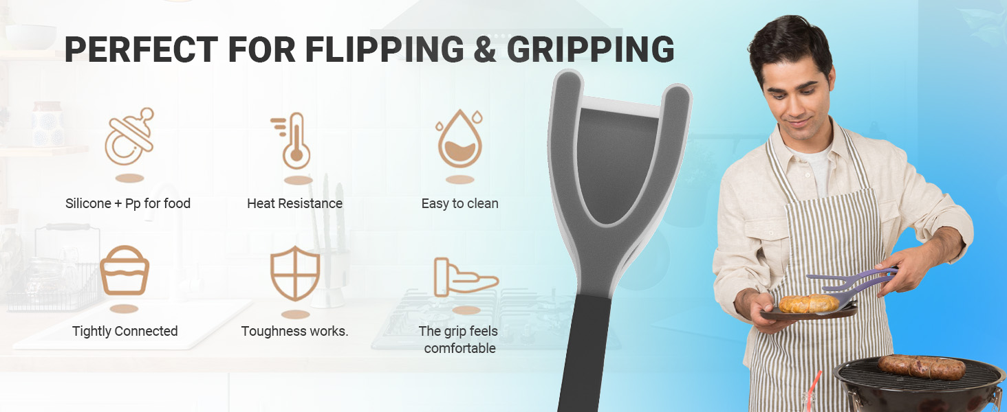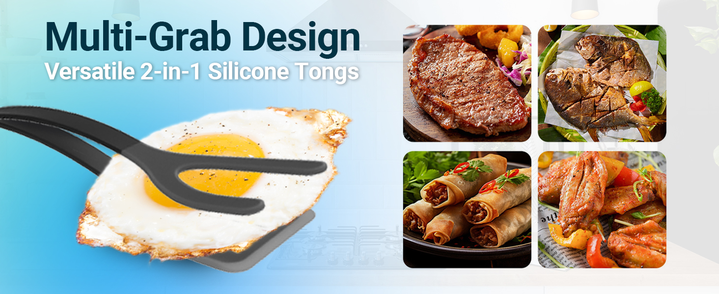 - 🍳Versatile 2-in-1 Design: Revolutionize your cooking experience with ease as you effortlessly egg flipper Spatula Tong and securely grip your foods. This innovative culinary tool is expertly designed to handle a variety of kitchen tasks with precision and versatility.