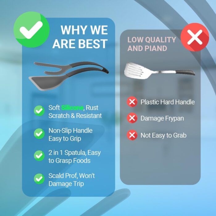 - 🍳Versatile 2-in-1 Design: Revolutionize your cooking experience with ease as you effortlessly egg flipper Spatula Tong and securely grip your foods. This innovative culinary tool is expertly designed to handle a variety of kitchen tasks with precision and versatility.